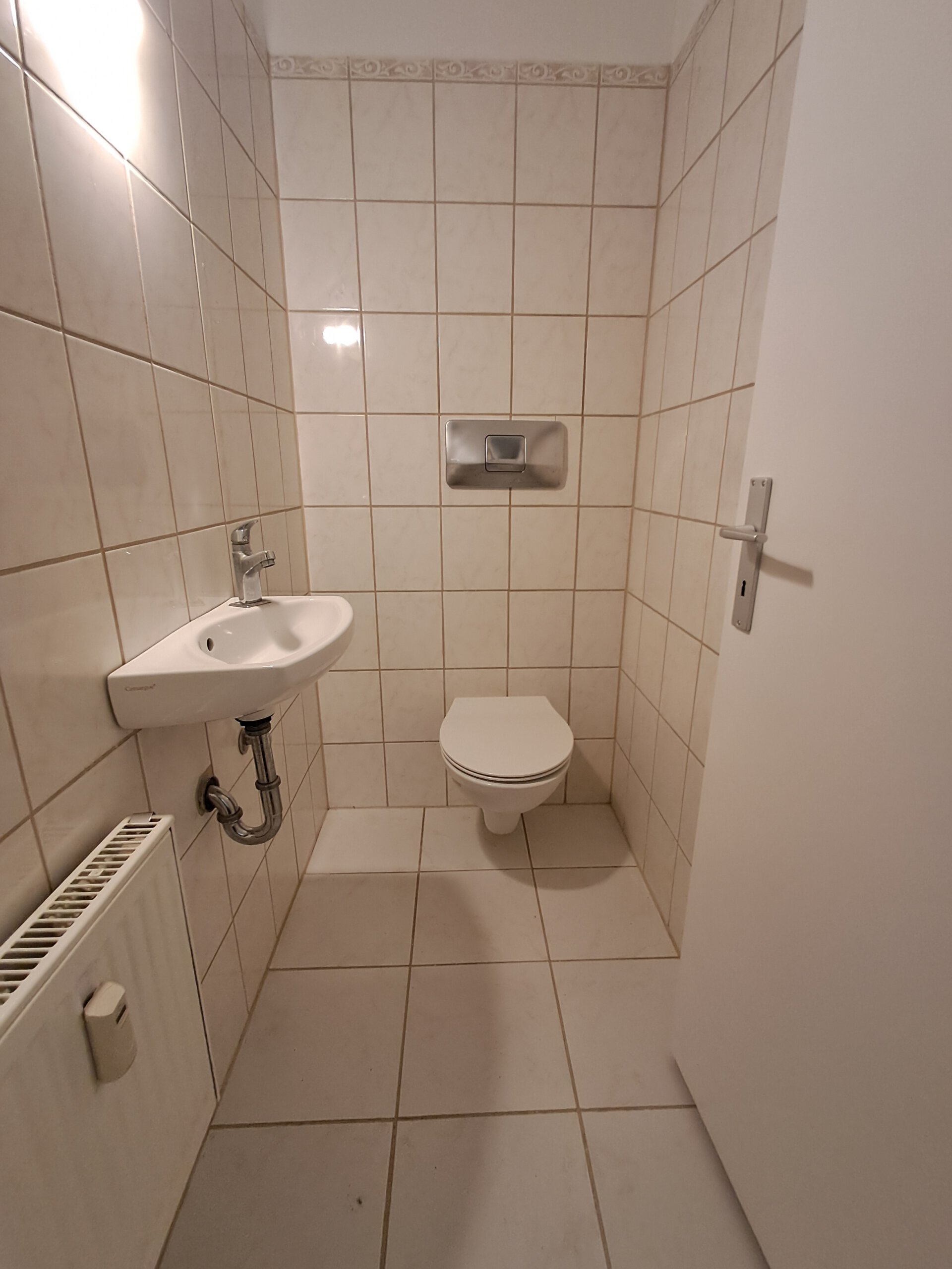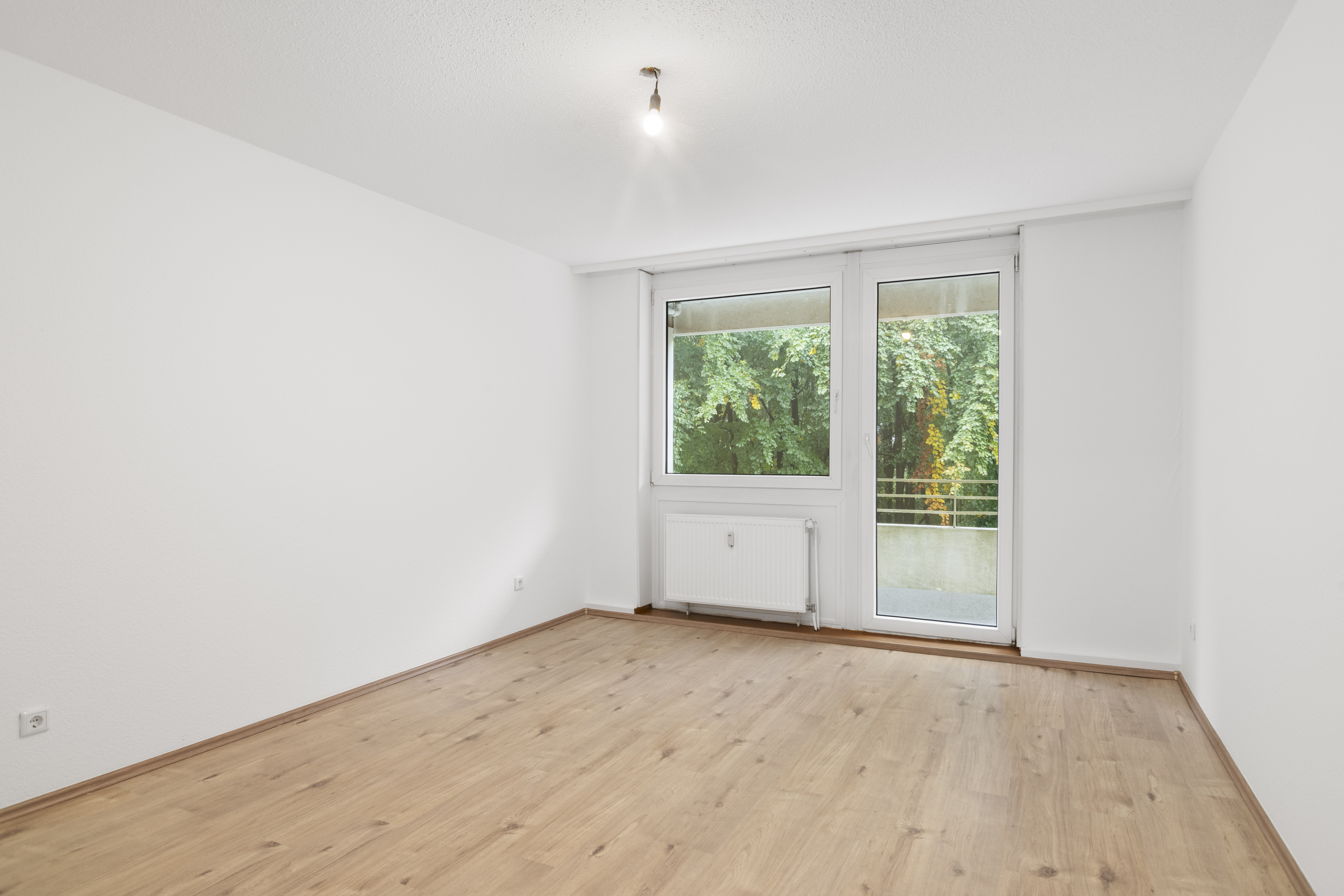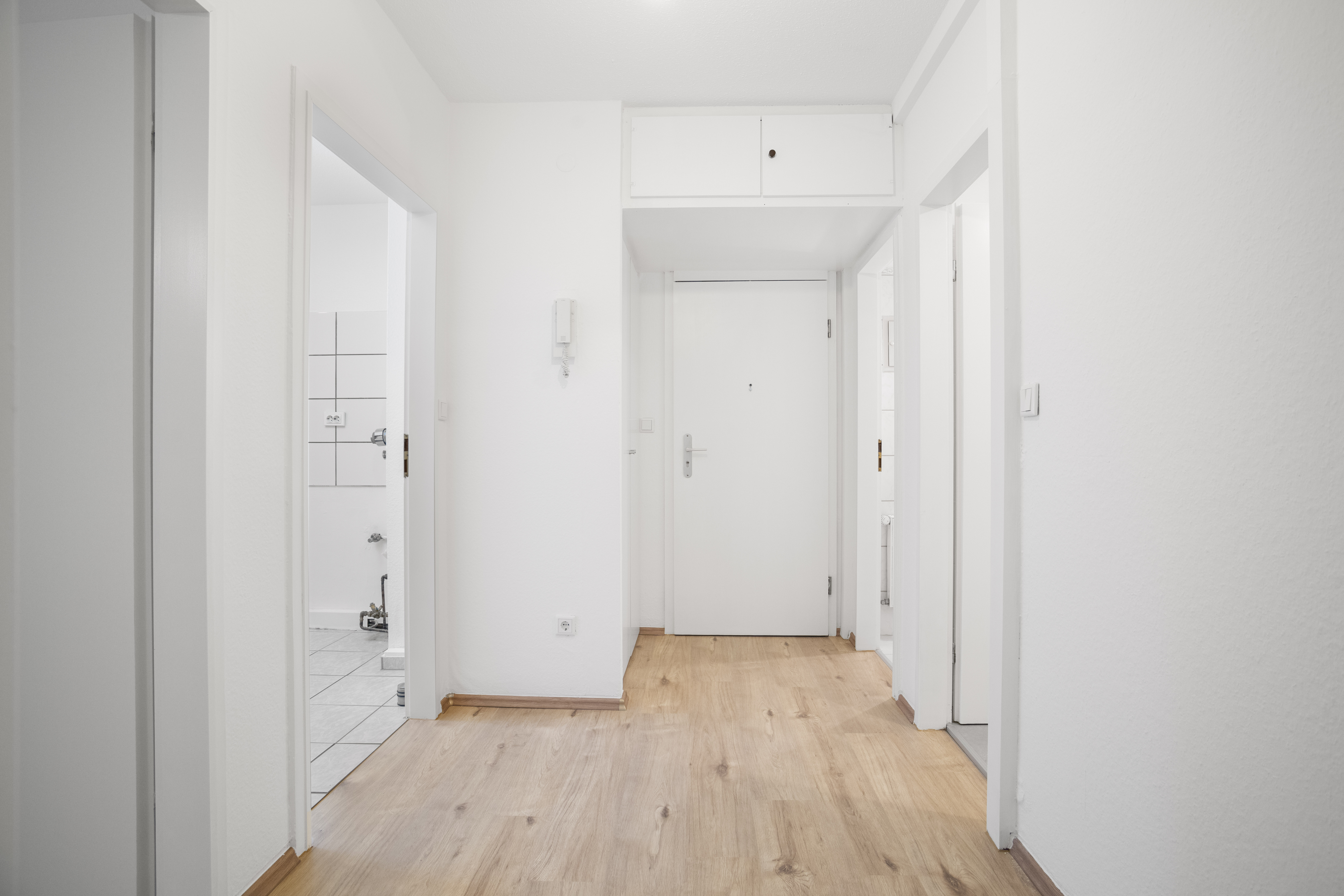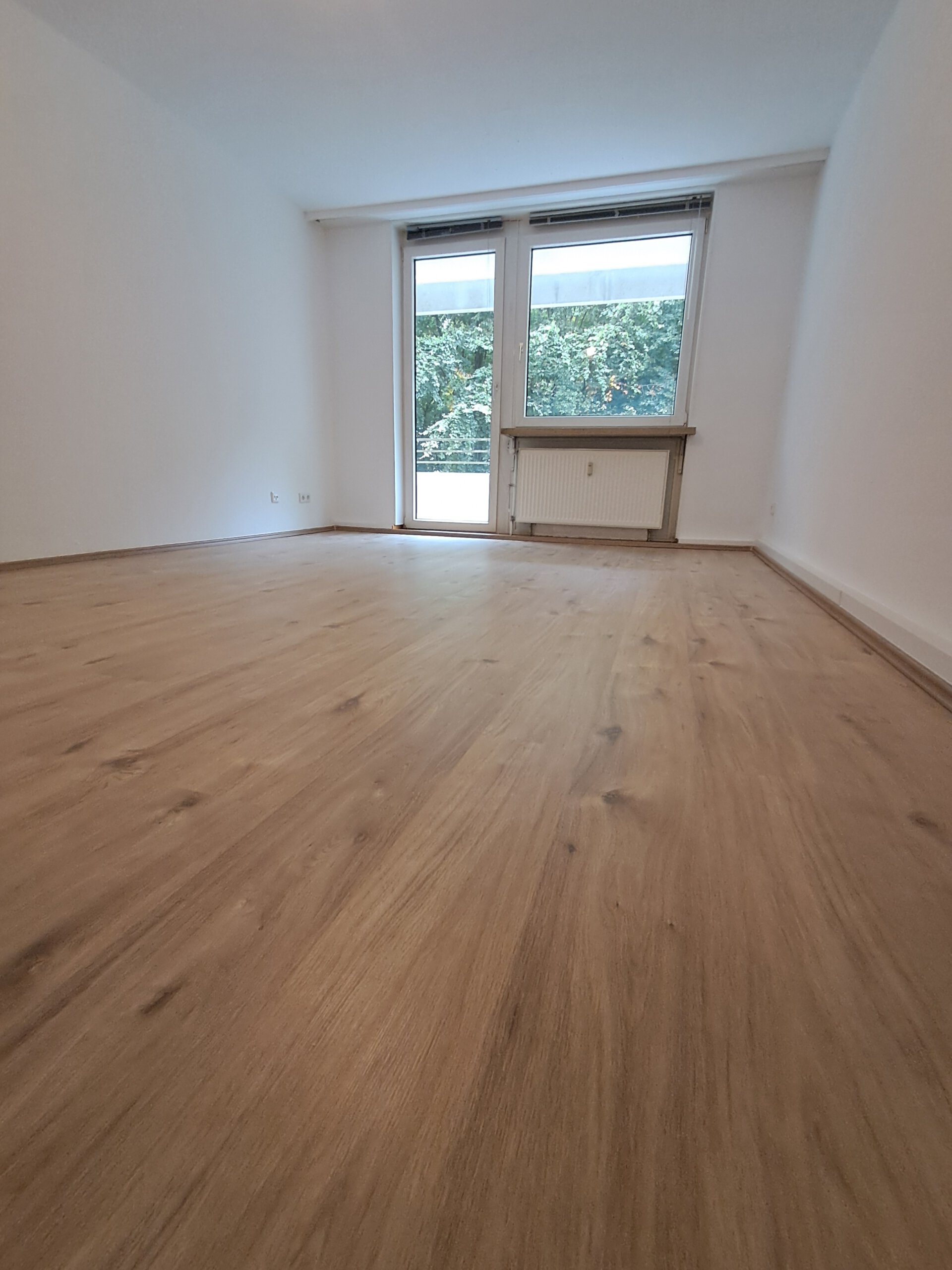 Die Wohnung wurde frisch renoviert. Alle Zimmer haben frisch gestrichene Rauhfasertapeten. Der neue Laminatboden besticht durch einen warmen Kontrast zu den geweißten Wänden.